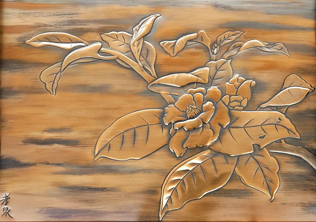 동백, 2025, 구리 동판에 부조 및 부식, 45.0x33.0cm
