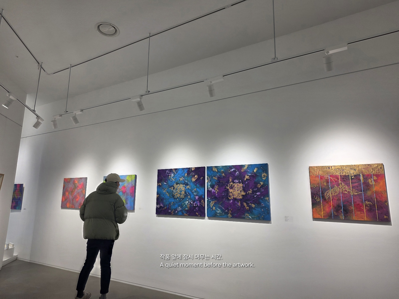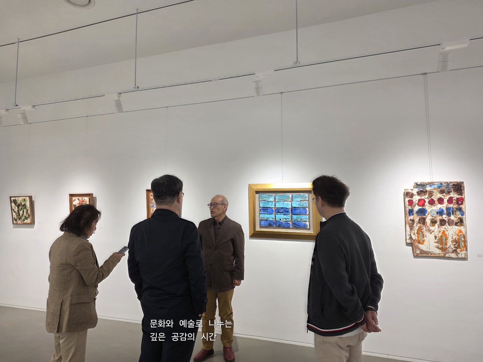 작품 앞에서의 진지한 눈빛, 그리고 이어진 따뜻한 미소. 문화와 예술로 하나 된 순간을 사진으로 담았습니다.
