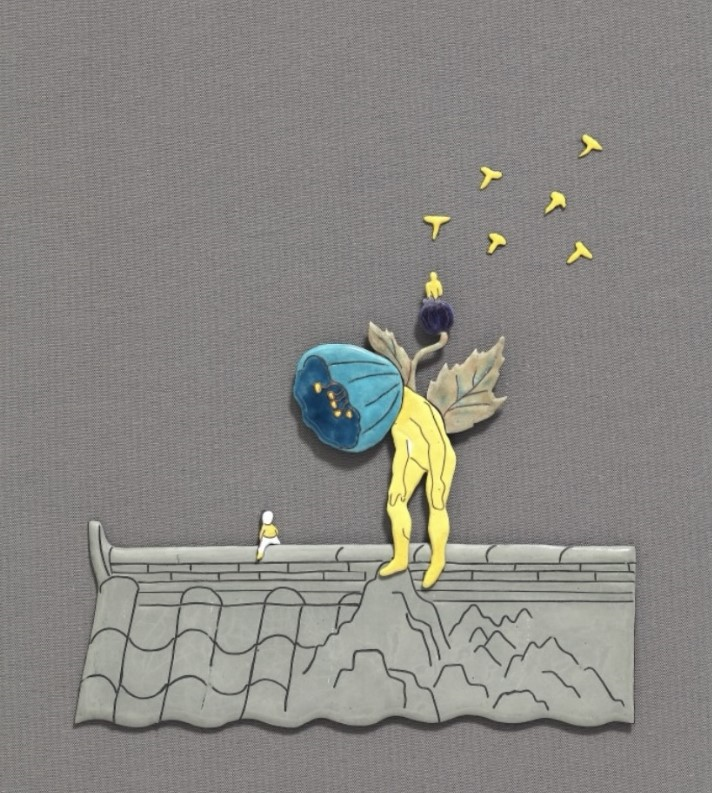 대화 _ 2024 _ Red copper, enamel, red copper wire,광목에 배접 _ 33x26cm