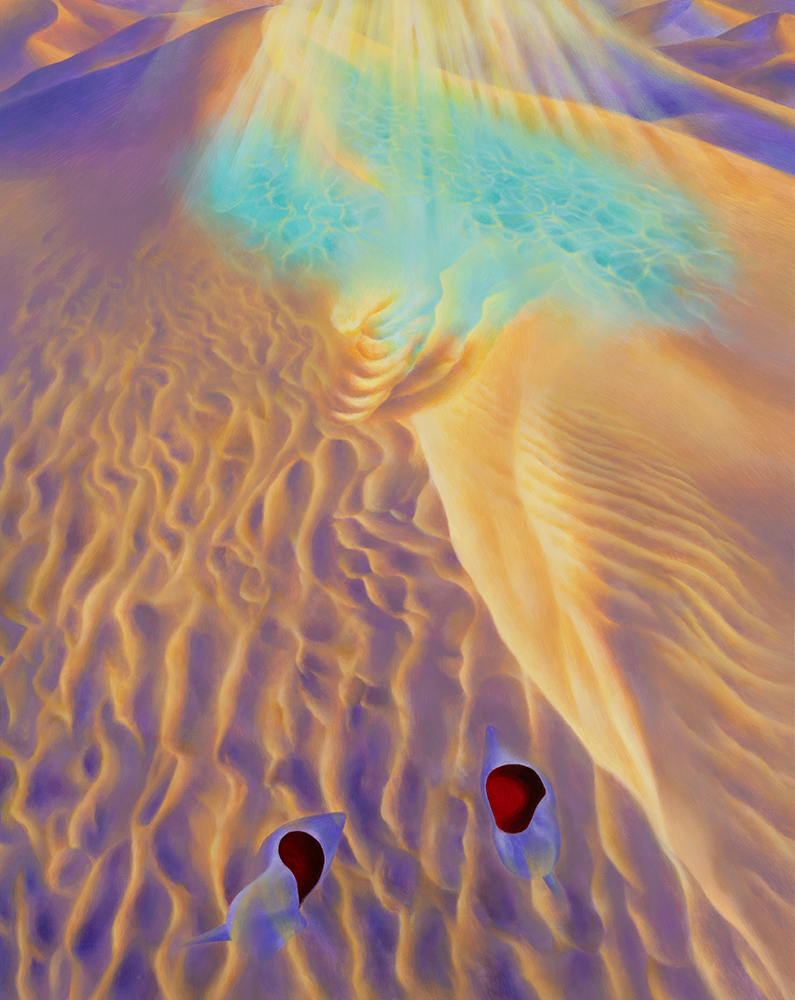 심해의 기억이 새겨낸 사막의 물결. 죽음이 내려앉은 황막한 대지는 생의 숨결이 넘실대던 태고의 기억을 그러쥔 채 처절하게 일렁인다. 죽음과 맞닿은 운명을 거스르고자, 경계의 대지는 영원한 춤을 택했다. 오롯한 찰나의 현재로 반짝이는 사막의 윤슬은 그래서 더 붉다.