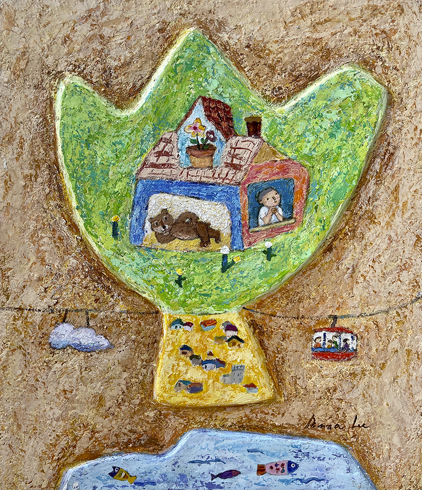 작가는 그림 안에서 행복한 꿈을 이룬다. 전설이 된 세계 최고의 성악가 파바로티가 노래하고 스테디셀러 생텍쥐페리의 어린 왕자는 나팔을 분다. 피아노와 바이올린 등의 악기를 연주하고 노래하는 형상들은 시공간을 초월하여 공감각적 심상을 자극한다.