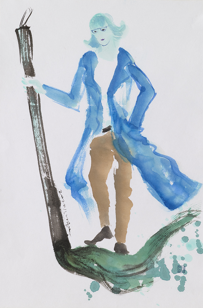 자화상 캐릭터 _ 2021 _ 한지에 수묵담채 _ 10x8cm