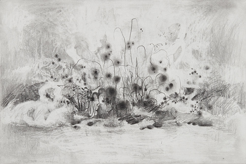 뒤엉킨 연필 선들과 까만 흑연 파우더로 뒤덮인 화면은 마치 오케스트라가 연주하는 교향곡처럼 조화와 긴장이 공존하며 자생적인 생태를 만들어 간다. 수없이 그리고 지우기를 반복하는 작업 과정은 채워지는 동시에 비워지면서 또 다른 것을 수용할 수 있는 공간을 만든다. 내가 작업을 하면서 채움과 비움의 시간을 가져가듯이 전시장에 오시는 분들도 작품을 감상하면서 충전과 휴식의 시간을 가질 수 있기를 소망한다.