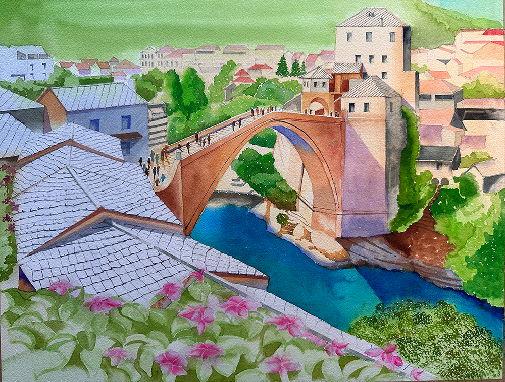 모스타 올드 브릿지(Mostar Old bridge), 2023, watercolor, 29x39cm